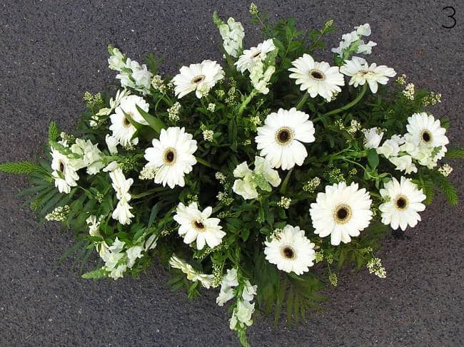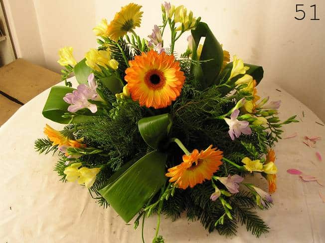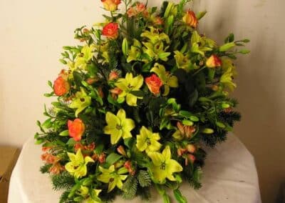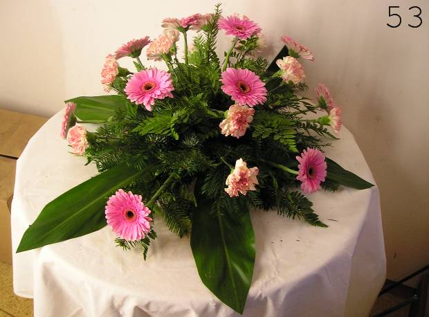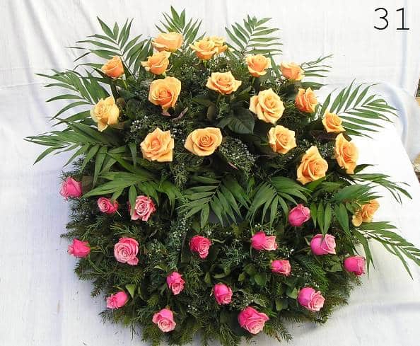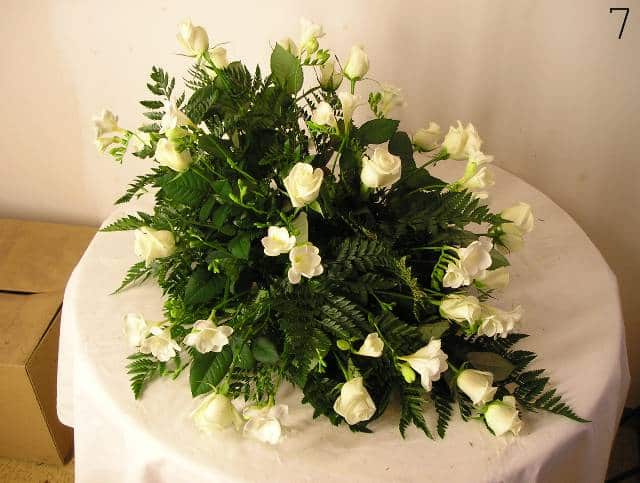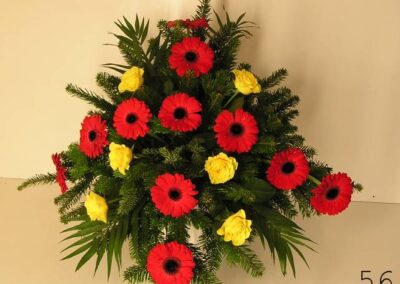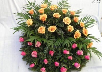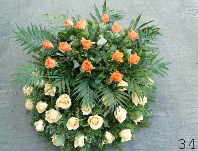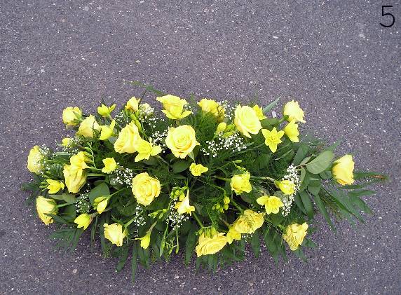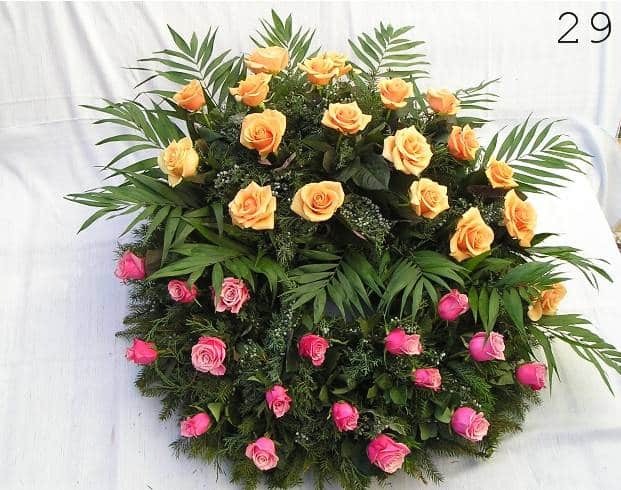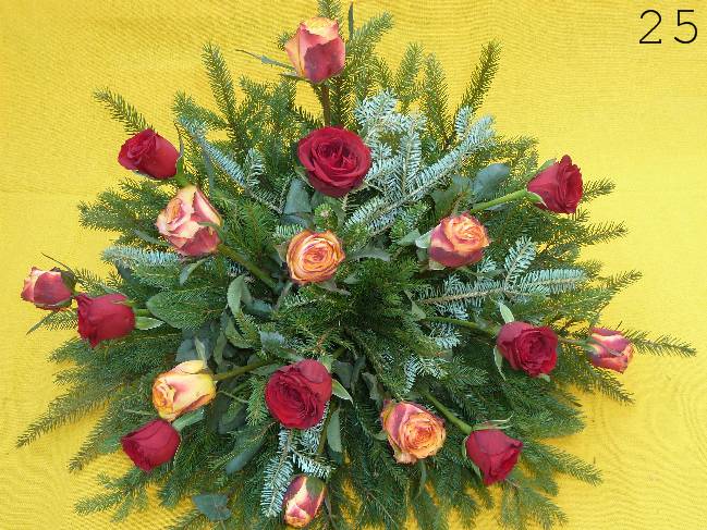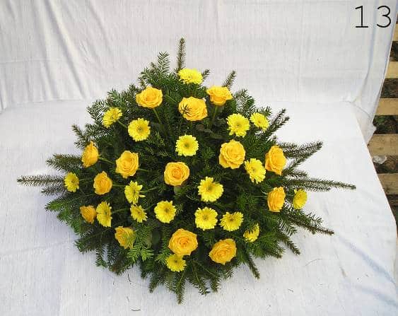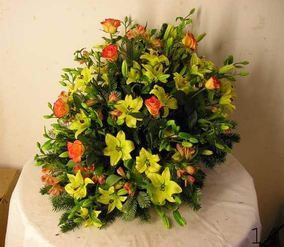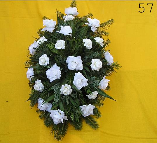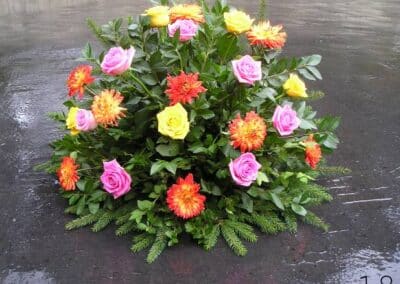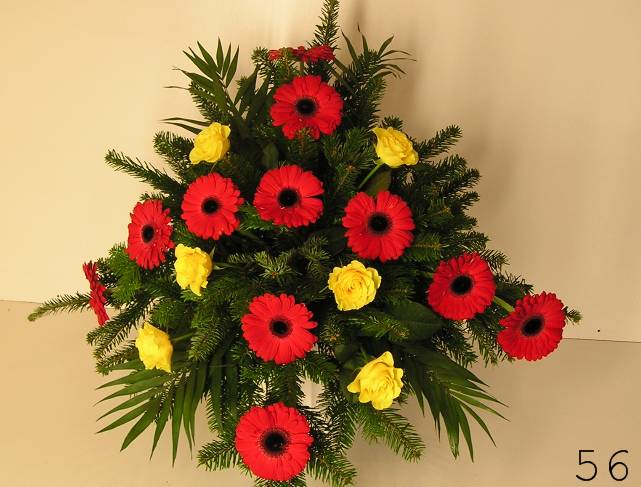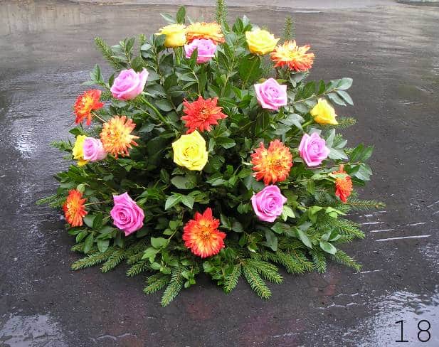 - smuteční kytice v různých tvarech a barvách, z růží, lilií, gerber a dalších květin